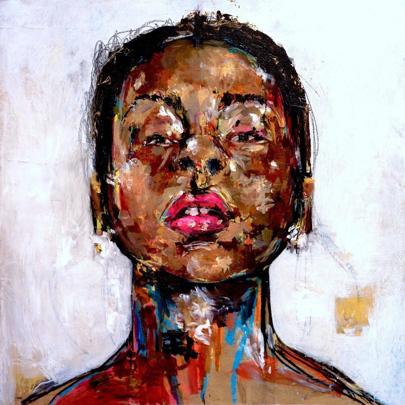 Hanging from a single wire, ๐จ ๐ซ๐๐๐๐๐ ๐ช๐๐๐๐๐๐๐๐๐๐๐๐ floats in space: a womanโs face is bisected on both sides. A force of spray paint, pastel, and acrylic form a visage in fluxโฆ
