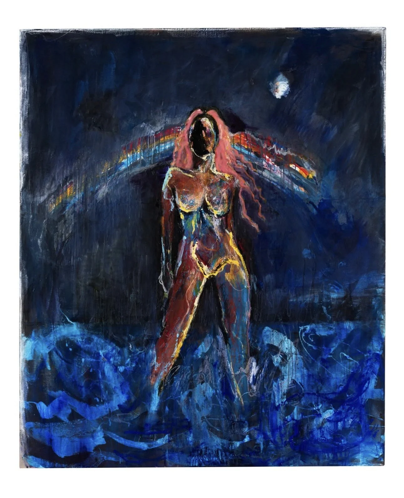 The night sky, crashing waves, and glint of moonlight unfold into a quiet meditation on Blackness. ๐ด๐๐๐๐๐๐๐๐ is a reflection on Blackness as the presence of all colors: the air, the sea, the body.